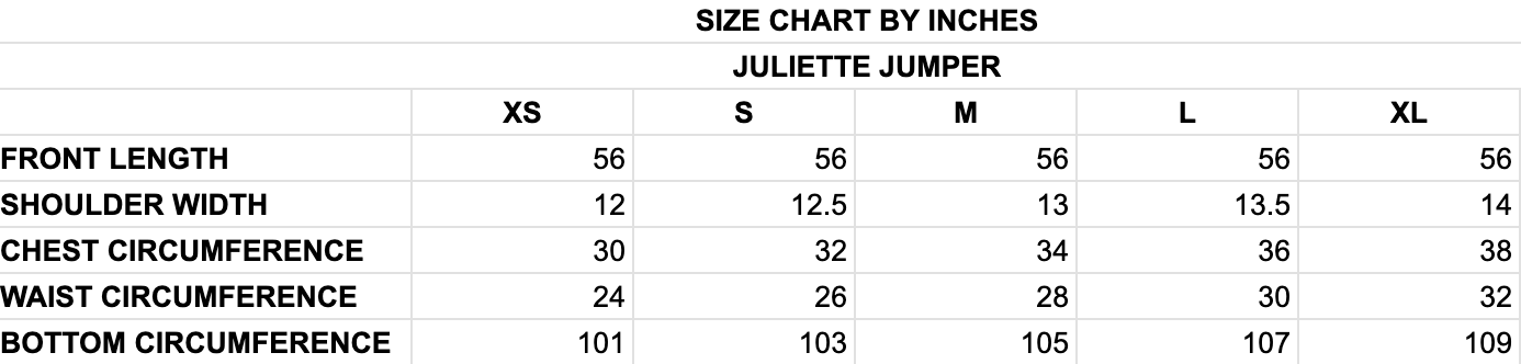 Juliette Jumper Sale! from $68.99 Size XS S M L XL Qty. Add to Cart This item is currently on backorder but you can still purchase it now and we'll ship as soon as more become available. The M Collection- designed by us for you! True to size Sleeveless jumper Zipper back Pair with our Juliette Jacket 95% Cotton, 5% Spandex Tweet Pin it Previous Next