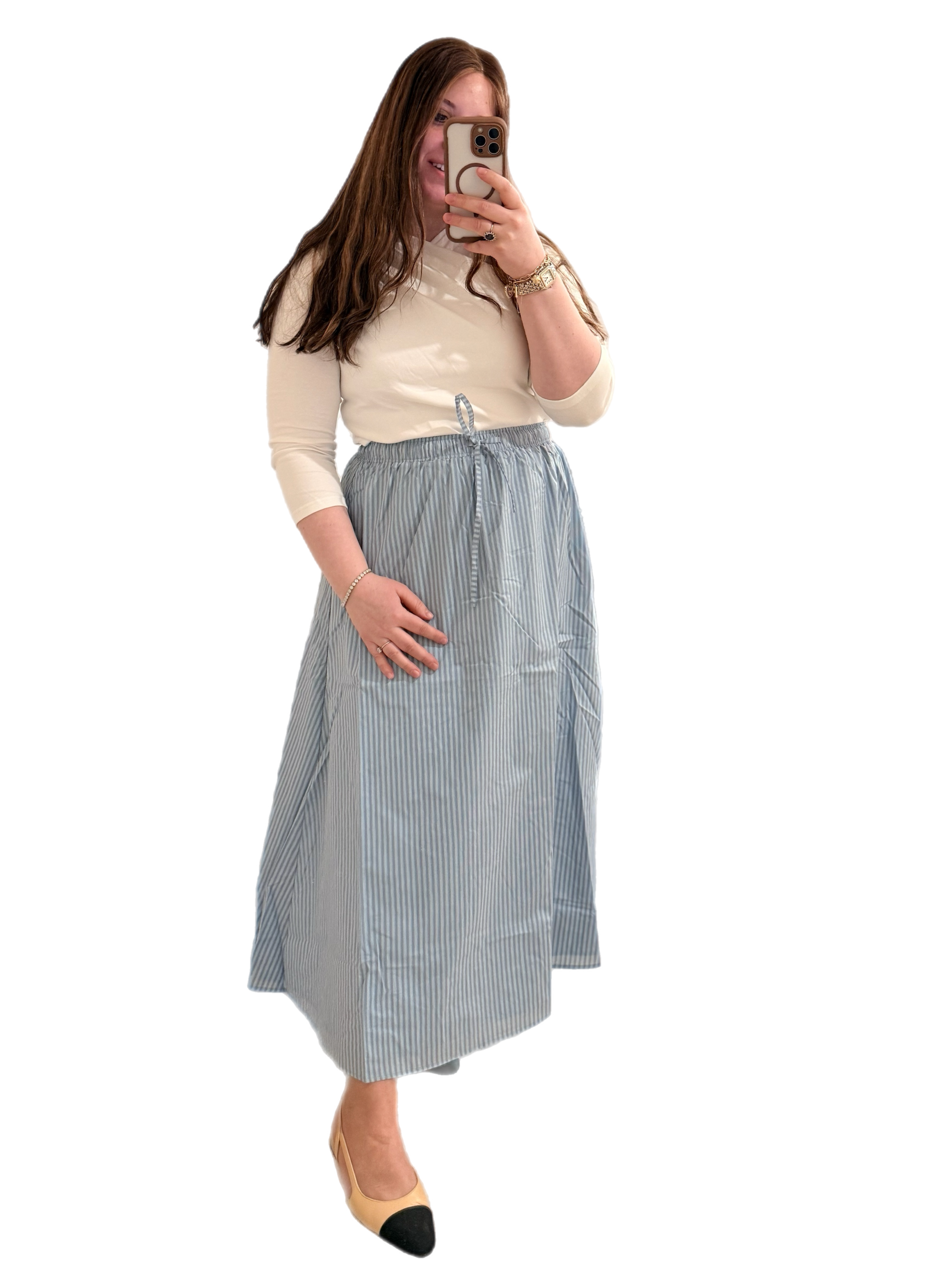 Nantucket Maxi Skirt Sale! from $68.99 Color Blue Pink Size XS S M L XL Qty. Add to Cart This item is currently on backorder but you can still purchase it now and we'll ship as soon as more become available. The M Collection- designed by us for you! True to size Elasticized waist Lined 90% Tencel, 10% Cotton Tweet Pin it